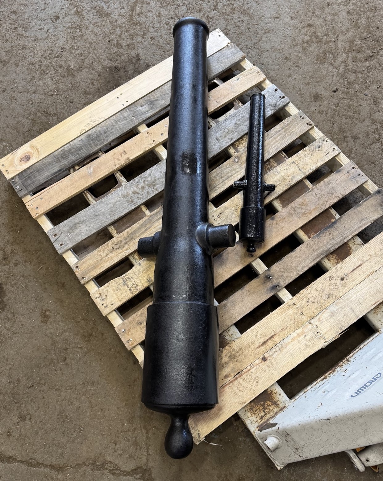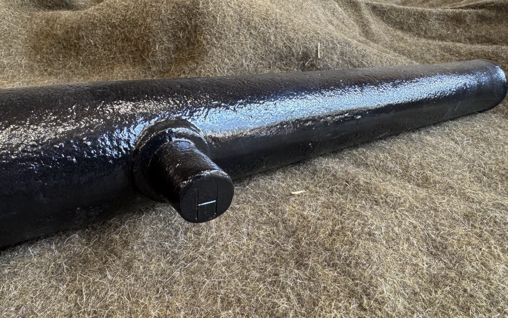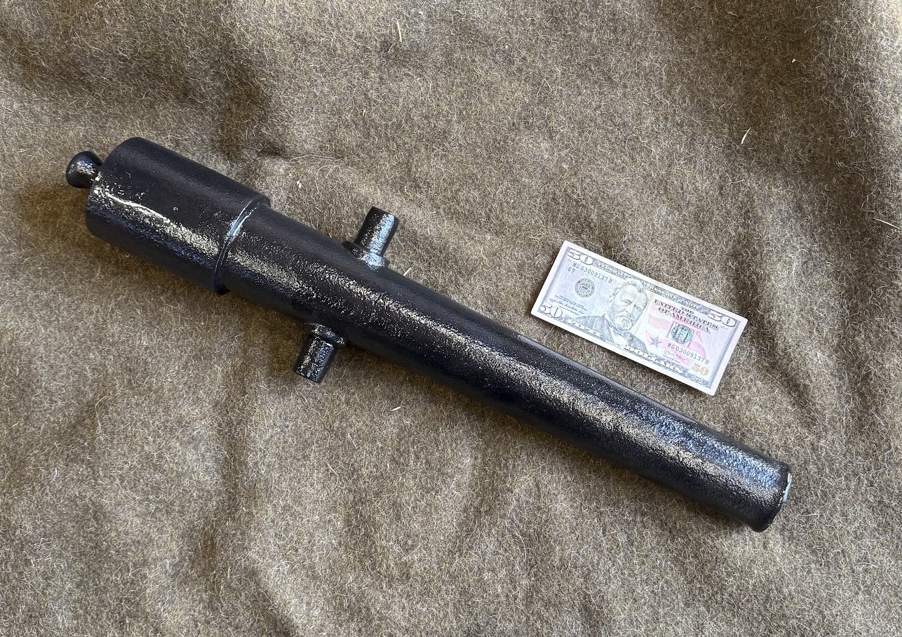 This little beauty is cast as a solid piece, in Ductile Iron. Liberty has been taken in the size of the trunnions so as to engage with the carriage better at this smaller scale. Pictures of actual product. Last picture shows 1/4 scale along side the 3/4 scale Parrott.