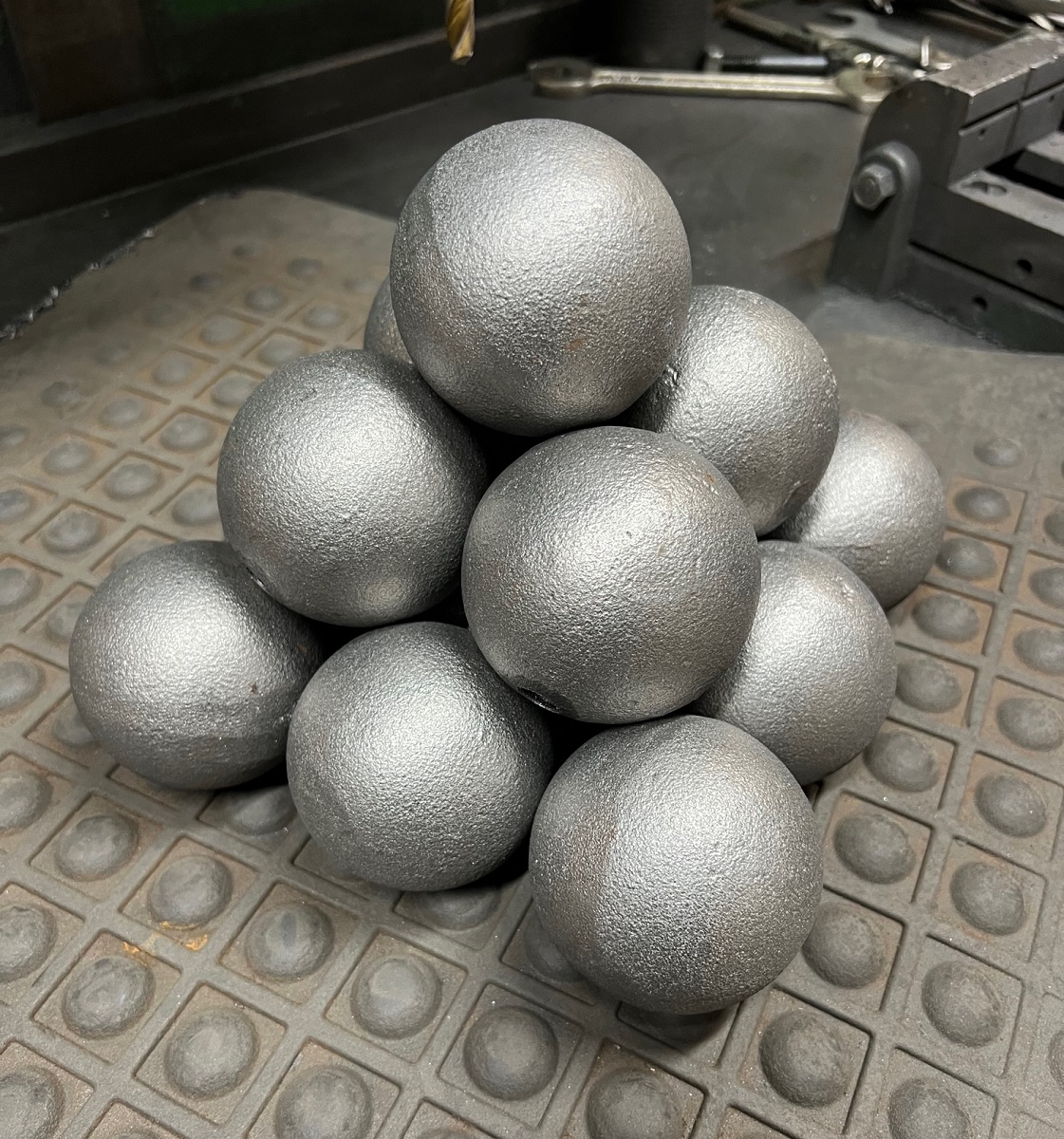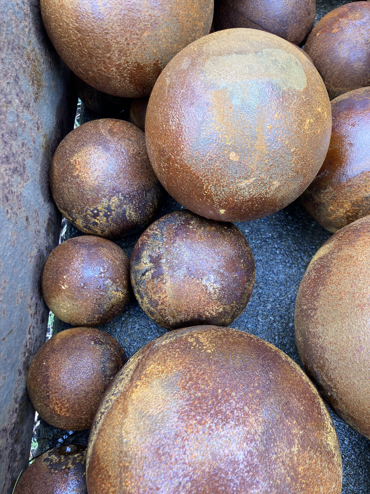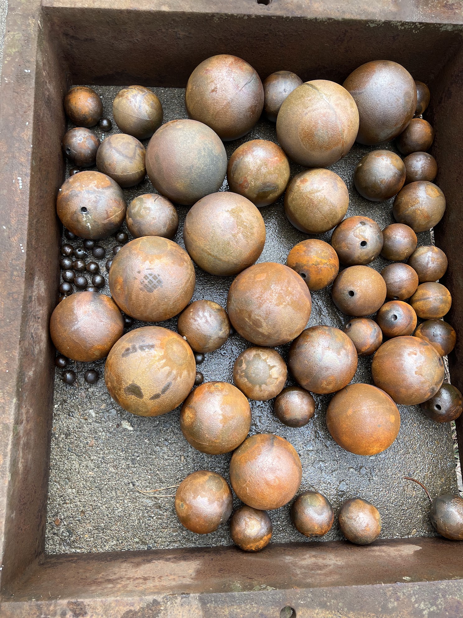 While measuring close under 3″ diameter actual. These run a bit tight in the 3″ DOM Hern Barrels. They would make Excellent display for your yard or hearth. *** Do not force fit balls into your cannon! If it does not freely roll down and back out – DO NOT USE!! Effort is made to ensure that balls are spherical, but customer will want to bore check each individual ball to his gun first before loading powder. Finish any irregularities that may be observed. Balls may be re-used, again – check for blemishes that need to be cleaned up with a file or grinder.